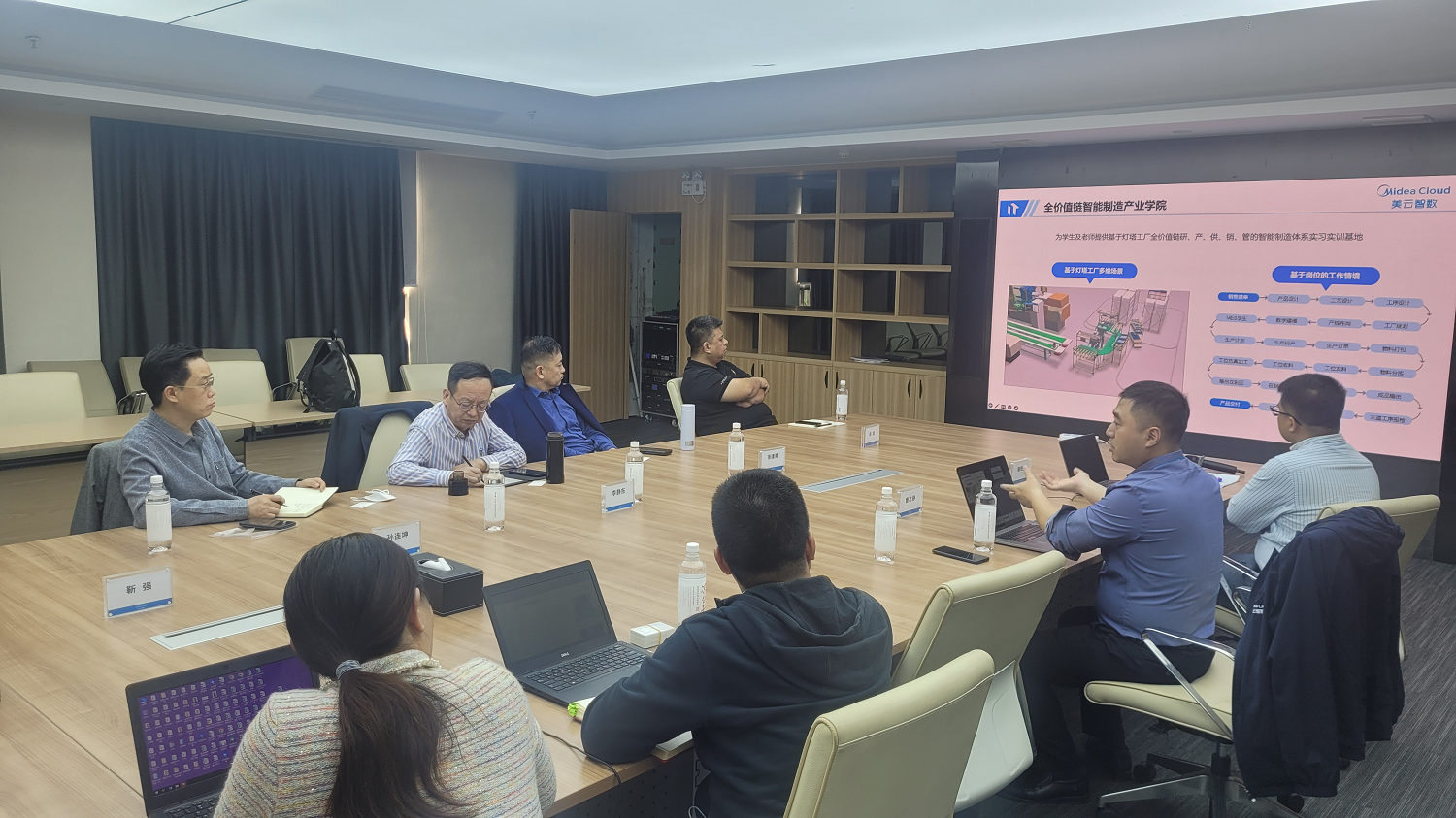 美的集团-美云智数身份云总监魏晓刚对各位老师的到来表示热烈欢迎,并安排参观考察了美的总部产品展厅和美的灯塔工厂。